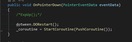 버튼에서 손을 떼면 OnPointerUp 메서드가 실행 되면서 코루틴을 종료시키는데