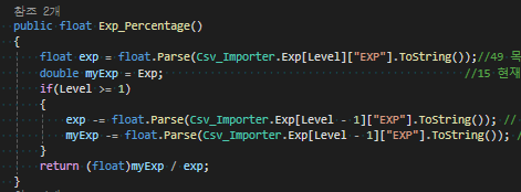 2. 다음 레벨업 까지의 퍼센트 반환 메서드 (Exp_Percentage)
