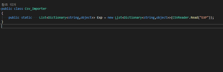 - static 처리 되어있기 때문에 아래처럼 외부에서 Csv_Importer 스크립트를 참조해서 데이터를 가져간다.