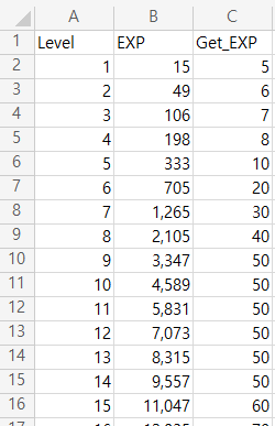 Exp[Level] 인자로 들어가는 Level은 초기값이 0이고 CSV에서는 첫 번째 row이다