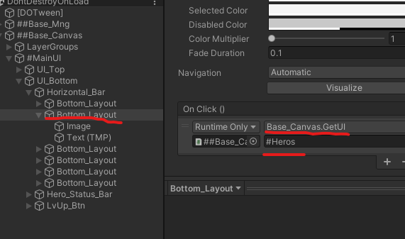 1. 영웅 버튼에 Base_Canvas.GetUI 메서드 연결