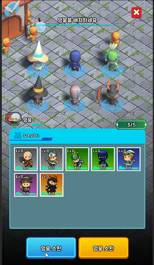 아래와 같이 영웅 팝업의 닫기 버튼을 누를 때에는