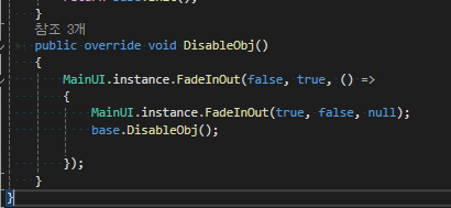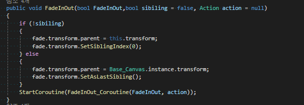 - 음 우선 fade를 위에서 true로 보내긴 하는데 if문을 통과하면 또 FadeInOut 메서드의 매게변수 세개를 작성해야 한다.