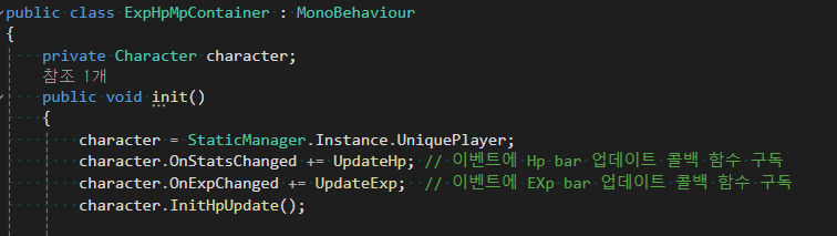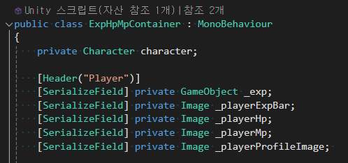 UpdateHp,UpdateExp는 ExpHpMpContainer.cs 코드에 포함 됩니다.