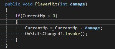 최종적으로 몬스터가 플레이어를 공격해서 플레이어 객체의 이벤트가 실행 되면 OnStatsChanged를 구독한 UpdateHp 콜백함수가 호출되어 UI가 변경됩니다. (Exp도 마찬가지)