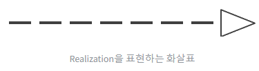 - UML에서 점선 + 속이 빈 삼각형 화살표로 표현함.
