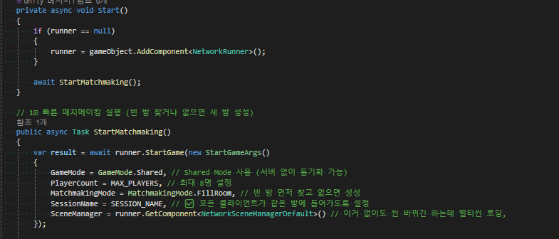 아무튼 그러고 방인원이 충족하면 씬이 바뀌는데 마스터 클라만 아래와 같이 로드씬 하면 됨 문서도 참고 ... 나머지 클라는 자동으로 씬 바뀌는듯