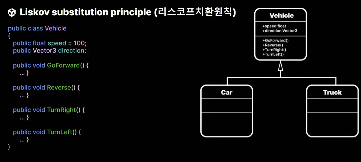 - 기반 클래스의 계약 위반: 서브 클래스가 기반 클래스에서 기대하는 계약(예: TakeDamage 메서드가 정상적으로 동작)을 지키지 않으면 문제가 발생합니다.